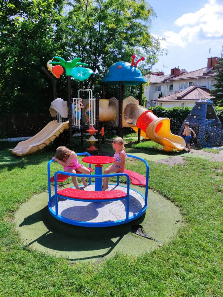 Placówka znajduje się na ogrodzonym terenie z dużym ogrodem, gdzie dzieci codziennie spędzają czas na świeżym powietrzu.